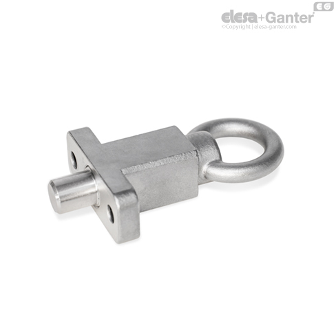 With indexing plungers GN 722.5, the plunger pin is actuated via the pull ring / latch. This is done either manually, with a cable or by means of an extended pull rod with hook. The ST version is designed for applications in steel construction, whereas the stainless steel version A4 is suitable for use in particularly aggressive environments.