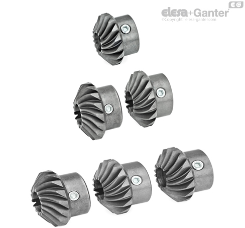 The spiral bevel facilitates both setting the desired clearance and locating the correct position of the bevel gears. Also, gears set up this way run with extremely low noise levels.