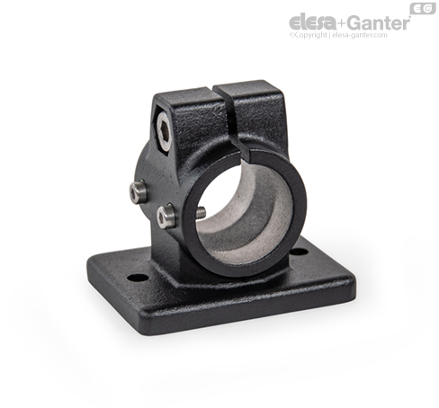 Flanged linear actuator connectors GN 146.13 are based on flanged connector clamps. The additionally provided mounting holes are used to connect to the drive key of a linear actuator. Bores with the designation G are equipped with sleeve bearings.