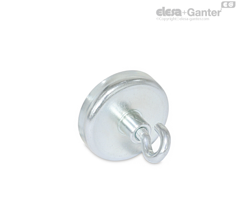 Retaining magnets GN 50.6 are combined with the steel housing and the plastic ring into a system that shields and strengthens the magnet for optimal transmission of the magnetic flux onto the magnetic surface.
