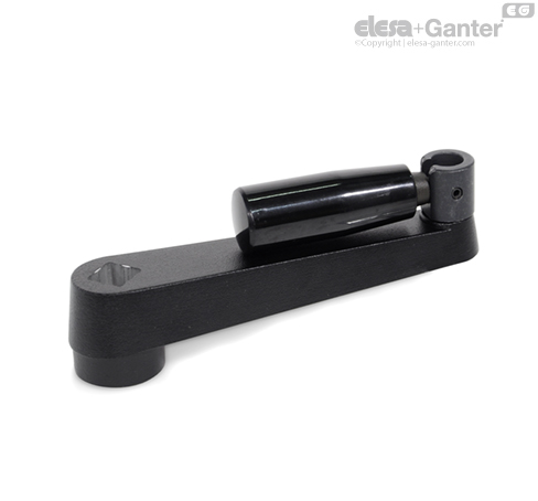The handle of the cranked handles with retractable handle GN 471.3 is locked in a tapered bore in the operating position.