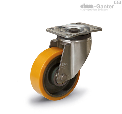 Suitable for heavy industrial applications. The mould-on polyurethane wheel ensures excellent rolling resistance and elasticity, high wear and tearing resistance. For further information see RE.F4.