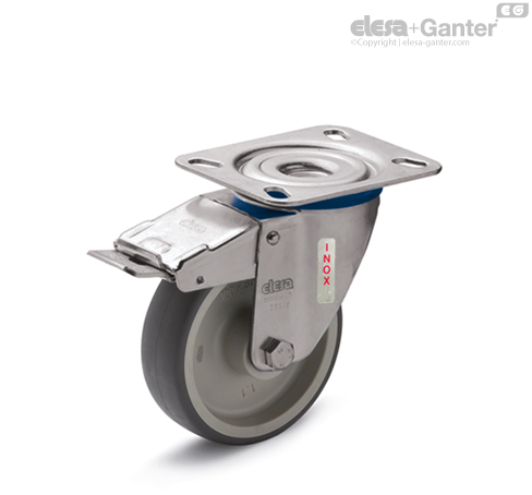 Total brake that locks the wheel and bracket rotation. The optimised dimensions and the retractable pedal ensure minimal space occupied and maximum actuation ease. Hardened carbon steel or stainless steel (SST version) spring.