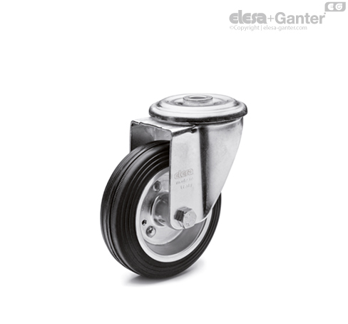 RE.E3 wheels may be mounted on different kinds of trolleys, with medium-light loads; it is also suitable for outdoor use. Typical applications: trolleys for industrial moving, for outdoor use also, waste dumpsters.