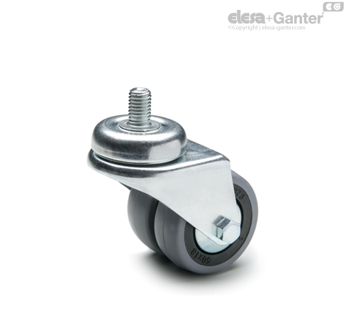 The twin wheels RE.C7-G are suitable for use in humid environments and in the presence of medium-aggressive chemical environments; use in environments with the presence of organic, chlorinated solvents, hydrocarbons and mineral oils is not recommended.