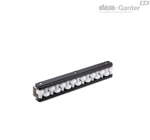 Roller side guides with zinc-plated steel profile, length 3129 mm.