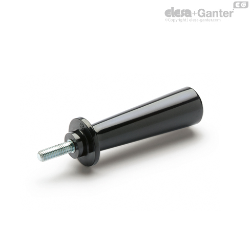 Phenolic based (PF) Duroplast body, polyamide based (PA) technopolymer flange, black colour, glossy finish.