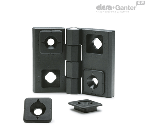 The adjusting inserts (ELESA patent) are designed to compensate limited misalignments of doors. Vertical and horizontal adjustments are both possible by simply setting the orientation of the inserts, thus obtaining the perfect alignment between the door and the frame.