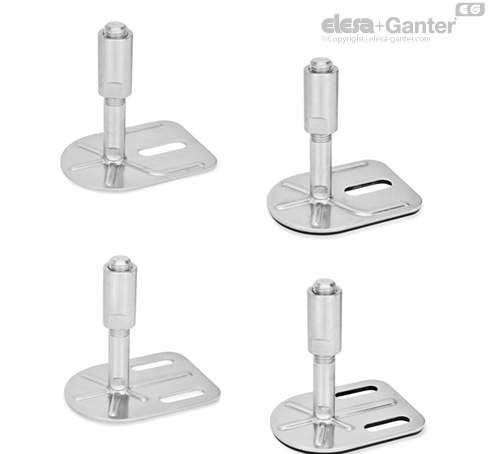 Leveling feet GN 43 are for use in aggressive environments. The range of combinations of base plates and adjustable spindle versions allows these leveling feat to be used in every situation.