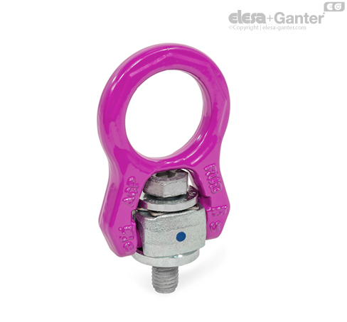 Rotating load rings GN 586.2 are used with separate lifting gear and lashing equipment. They are screwed onto load-bearing equipment or directly onto the load and can absorb loads in any direction.
