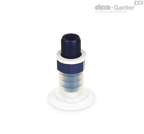 Vacuum cup in oil-proof rubber (NBR), natural rubber (NR), or silicone rubber (VMQ).