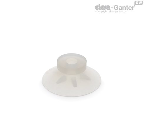 Vacuum cup in oil-proof rubber (NBR), natural rubber (NR), natural yellow rubber (NG), or silicone rubber (VMQ).