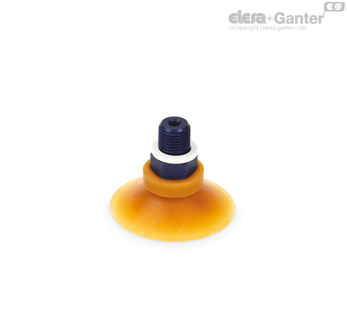 Vacuum cup in oil-proof rubber (NBR), natural rubber (NR), natural yellow rubber (NG), or silicone rubber (VMQ).