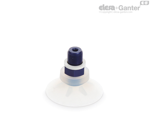 Vacuum cup in oil-proof rubber (NBR), natural rubber (NR), natural yellow rubber (NG), or silicone rubber (VMQ).