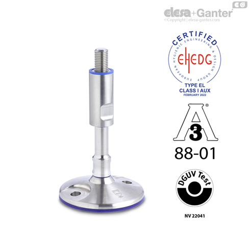 Регулируемые ножки GN 20 без монтажных отверстий соответствуют требованиям санитарного стандарта 3-A 88-01 и принципам испытаний DGUV, что делает их подходящими для использования в гигиенических зонах. Регулируемые ножки GN 20 с монтажными отверстиями соответствуют директивам EHEDG, санитарному стандарту 3-A 88-01 и принципам испытаний DGUV, что делает их весьма подходящими для использования в гигиенических зонах.