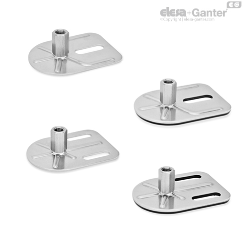 Крепление регулируемых опор к монтажной поверхности при помощи фиксирующего выступа обеспечивает предотвращение бокового смещения. Кроме того, модели с резиновой подкладкой защищают чувствительные поверхности.