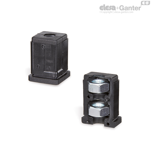 Двe детали торцевой заглушки имеют несколько установочных штифтов, которые расположены в специальных контрсёдлах. Два углубления внутри торцевой заглушки предусмотрены для двух шестигранных гаек DIN 934.