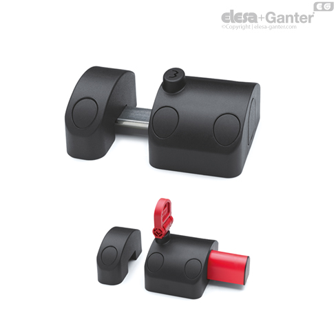 - Блокировка: нажимайте кнопку шпингалета, пока конец красного цвета полностью не исчезнет и устройство не защёлкнется. Ключ не должен быть вставленным при закрытии шпингалета.