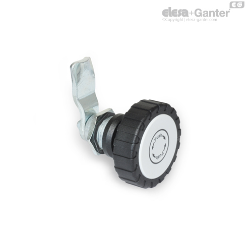 Защелки GN 115.9 имеют надавливаемые блокираторы. В двух конечных положениях шпиндель фиксируется на месте защелкой. Устройство можно поворачивать на 90° только при нажатии на функциональный элемент, высвобождая предохранительный штифт из заблокированного положения. Эта функция надежно блокирует защелку от самостоятельного перемещения или из-за вибрации.
