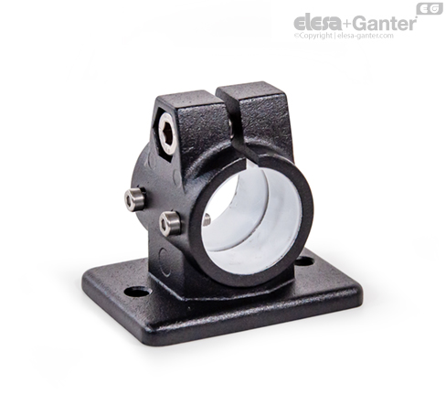 Фланцевые зажимы линейного привода GN 146.13 основаны на фланцевых соединительных зажимах. Предусмотренные дополнительно крепёжные отверстия используются для соединения со шпонкой линейного привода. Отверстия с обозначением G оснащены втулочными подшипниками.