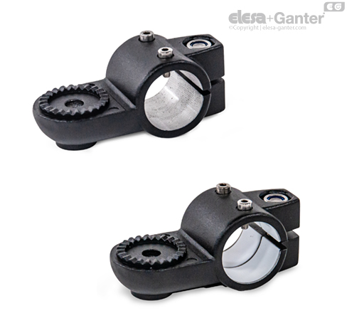 Поворотные зажимы для линейного привода GN 278.1 основаны на поворотных зажимах. Предусмотренные дополнительно крепёжные отверстия используются для соединения со шпонкой линейного привода. Отверстия с обозначением G оснащены втулочными подшипниками.