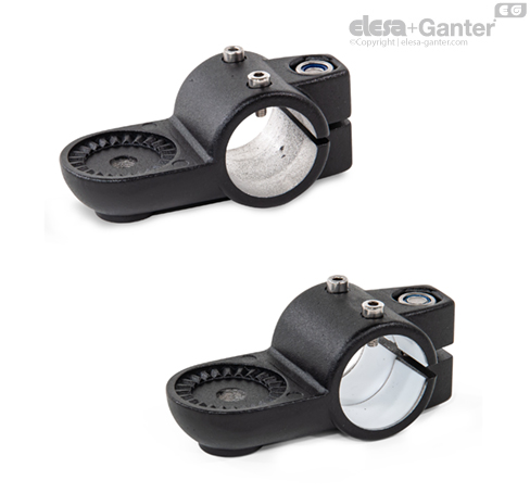 Поворотные зажимы для линейного привода GN 278.1 основаны на поворотных зажимах. Предусмотренные дополнительно крепёжные отверстия используются для соединения со шпонкой линейного привода. Отверстия с обозначением G оснащены втулочными подшипниками.