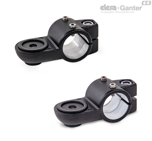 Поворотные зажимы для линейного привода GN 278.1 основаны на поворотных зажимах. Предусмотренные дополнительно крепёжные отверстия используются для соединения со шпонкой линейного привода. Отверстия с обозначением G оснащены втулочными подшипниками.