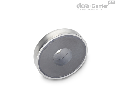 Удерживающие магниты из нержавеющей стали GN 50.45 объединены с корпусом из нержавеющей стали и пластмассовым кольцом/изоляционным кольцом в систему, обеспечивающую защиту и усиливающую магнит для оптимальной передачи магнитного потока на магнитную поверхность.
