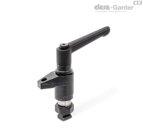 Зажимы, поджимаемые вниз, можно ввинчивать напрямую, например в монтажную пластину, или крепить к столам механической обработки при помощи T-образных пазов. Цилиндры высоты GN 9192.3 могут использоваться для увеличения высоты зажима. Регулируемая ручка рычажного типа (тип K) поставляется в разобранном виде.