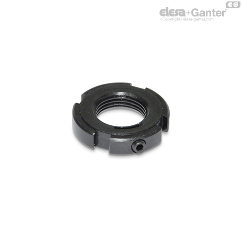 Шлицевые контргайки с резьбовым фиксатором GN 1804.2 могут быть защищены от перекручивания из-за срыва резьбового вала с помощью установочного винта d4. Боковая поверхность резьбы гайки обеспечивает крепление без повреждений и может использоваться при любой необходимости.
