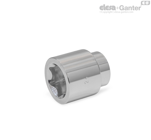 Муфты GN 3124 используются для монтажа стандартных деталей гигиенического исполнения, перечисленных в таблице. В сочетании с используемым материалом в виде алюминия закруглённая шестиугольная геометрическая форма лысок под ключ передаёт крутящий момент на головку винта, не причиняя вреда.