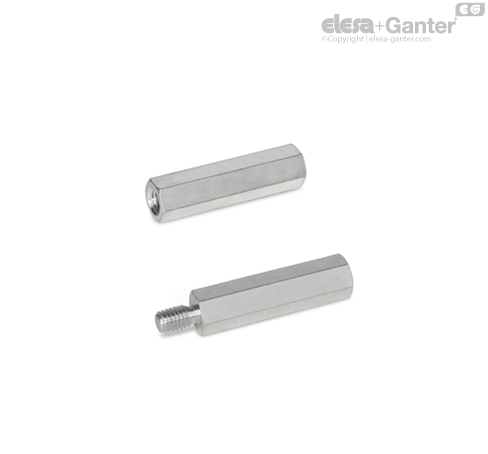 Проставки GN 6220 обычно используются как распорные шпильки. Они обеспечивают присоединение деталей со смещением параллельно к монтажным пластинам. Tип A также используется в качестве соединительной гайки.