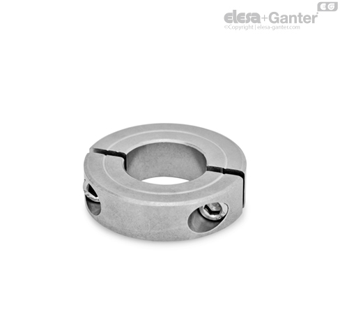 Разрезные установочные кольца GN 707.2 соответствуют по размерам полуразрезным установочным кольцам GN 706.2. Они используются в случае невозможности осевой сборки. Эти установочные кольца могут безопасно и просто собираться путём уменьшения высоты паза с помощью большой силы зажима. Таким образом, они работают, например, как концевой упор. Поверхность вала или оси не повреждена.