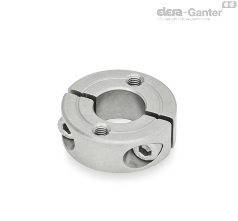 С разрезными установочными кольцами GN 7072.2, например, оси подсоединены к корпусу, или маховики и шайбы установлены на валах.
