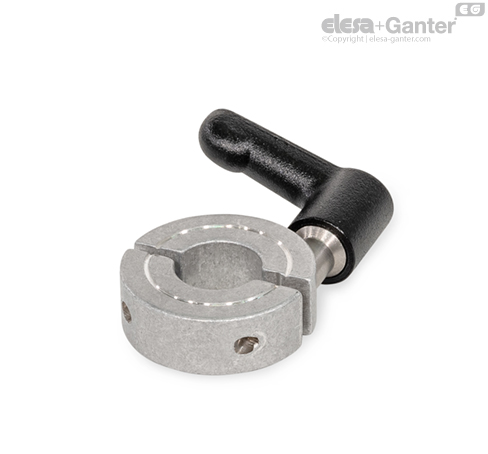 Разрезные установочные кольцa GN 707.4 используются в случае возможности осевого монтажа. Они зажимаются легко и быстро без инструментов за счёт уменьшения высоты паза при помощи регулируемого рычага управления. Например, это позволяет их использование в качестве концевого ограничителя, подлежащего частой регулировке.