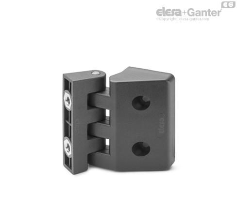 Петля состоит из двух корпусов различных размеров (узкий и более широкий) и может быть собрана, например, на конструкциях с тонкой коробкой или дверью.