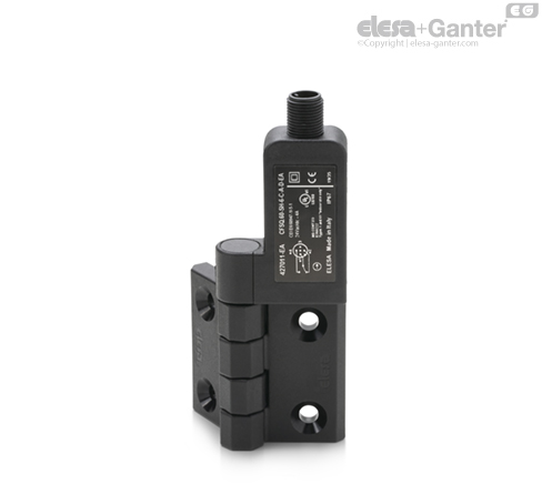 - Петля со встроенным выключателем (патент ELESA) является предохранительным устройством, так как в случае случайного открывания дверей, защитных устройств оборудования или защитных дверей на машинах и производственном оборудовании она автоматически прерывает подачу питания, защищая, таким образом, операторов.