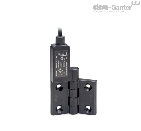 - Петля со встроенным выключателем (патент ELESA) является предохранительным устройством, так как в случае случайного открывания дверей, защитных устройств оборудования или защитных дверей на машинах и производственном оборудовании она автоматически прерывает подачу питания, защищая, таким образом, операторов.