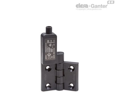 - Петля со встроенным выключателем (патент ELESA) является предохранительным устройством, так как в случае случайного открывания дверей, защитных устройств оборудования или защитных дверей на машинах и производственном оборудовании она автоматически прерывает подачу питания, защищая, таким образом, операторов.