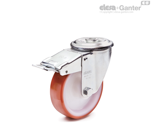 Тележка должна быть обточена для использования устройства. Тормоз прост и эффективен в использовании: он приводится в действие и расцепляется простым воздействием сверху вниз на кончик двух отдельных педалей, тем самым обеспечивая максимальное удобство маневрирования.