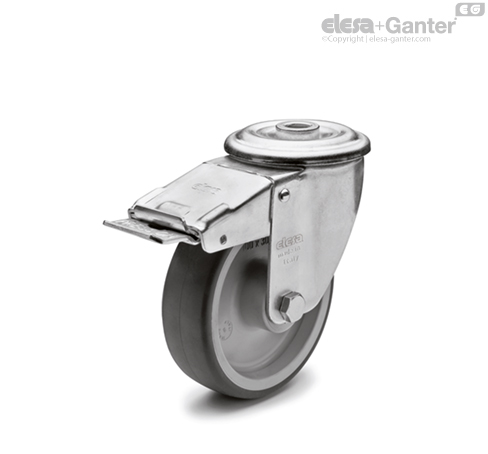 Общий тормоз, блокирующий колесо и кронштейн. Оптимизированные размеры и убирающаяся педаль обеспечивают минимальное занимаемое пространство и максимальное удобство приведения в действие. Пружина из закаленной углеродистой стали.