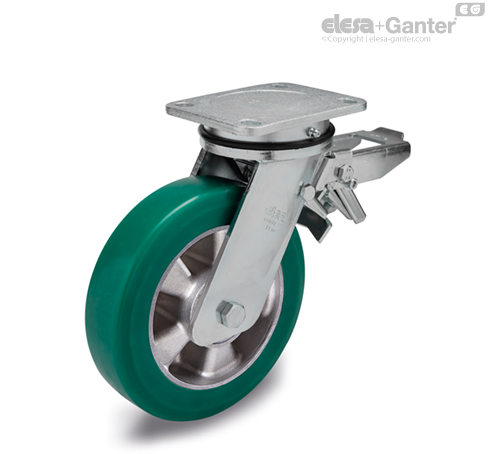 Пригоден для тяжёлых промышленных применений и для суровых условий эксплуатации, например, при боковом воздействии и при высоких скоростях. Изготовленное по образцу полиуретановое колесо обеспечивают превосходное сопротивление качению и эластичность, высокую стойкость к износу и разрыву. Для получения дополнительной информации, см.RE.F2.