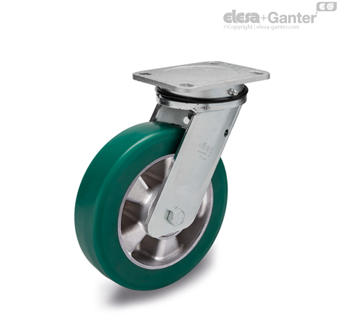 Пригоден для тяжёлых промышленных применений и для суровых условий эксплуатации, например, при боковом воздействии и при высоких скоростях. Изготовленное по образцу полиуретановое колесо обеспечивают превосходное сопротивление качению и эластичность, высокую стойкость к износу и разрыву. Для получения дополнительной информации, см.RE.F2.