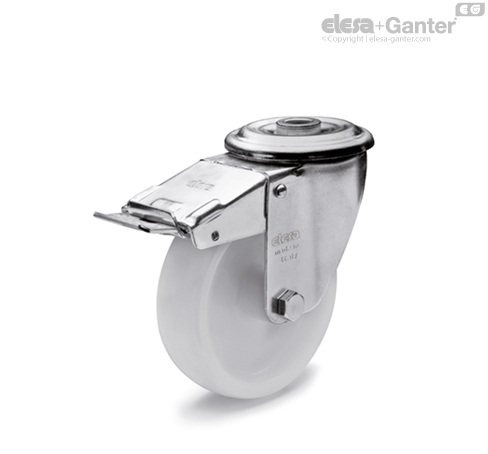 Общий тормоз, блокирующий колесо и кронштейн. Оптимизированные размеры и убирающаяся педаль обеспечивают минимальное занимаемое пространство и максимальное удобство приведения в действие. Пружина из закаленной углеродистой стали.