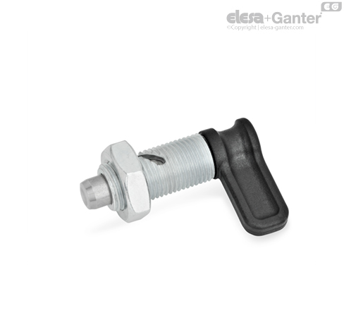 Рычажные фиксаторы с кулачковым механизмом GN 712 используются в тех областях применения, где штифт фиксатора не должен выступать постоянно. При повороте кулачка на 90° или 120° против часовой стрелки фиксатор перемещается сквозь изогнутое отверстие в корпусе. После этого штифт фиксатора втягивается.