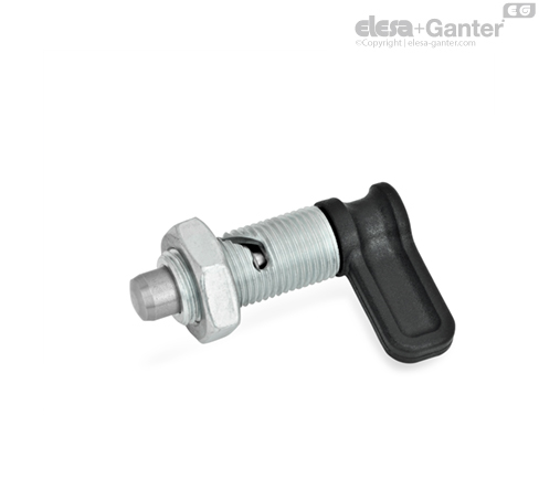 Рычажные фиксаторы с кулачковым механизмом GN 712 используются в тех областях применения, где штифт фиксатора не должен выступать постоянно. При повороте кулачка на 90° или 120° против часовой стрелки фиксатор перемещается сквозь изогнутое отверстие в корпусе. После этого штифт фиксатора втягивается.