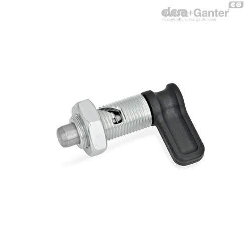 Рычажные фиксаторы с кулачковым механизмом GN 712 используются в тех областях применения, где штифт фиксатора не должен выступать постоянно. При повороте кулачка на 90° или 120° против часовой стрелки фиксатор перемещается сквозь изогнутое отверстие в корпусе. После этого штифт фиксатора втягивается.