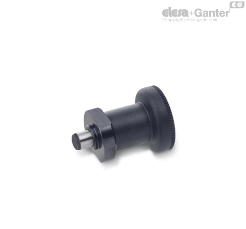 Стопорные штифты GN 607.5 с фиксацией в отжатом положении используются в тех случаях, когда стопорный стержень временно не должен выступать. После оттягивания необходимо повернуть ручку на 90°.