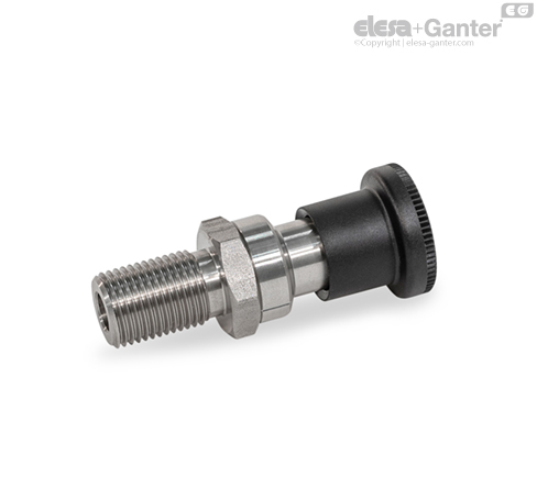 Стопорные фиксаторы типа C / CK c фиксацией в отжатом положении используются в тех случаях, когда штифт фиксатора временно не должен выступать. В таком случае поворотная ручка оттягивается и затем поворачивается на 90°. Паз удерживает штифт в этом положении.