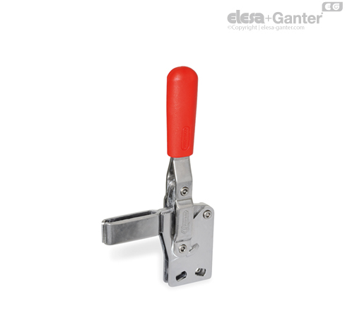 Вертикальные шарнирные зажимы GN 810.1 работают по правилу изгиба: рычаг и прижимная планка перемещаются в одном направлении. В зажатом положении рычаг управления находится в вертикальном положении.